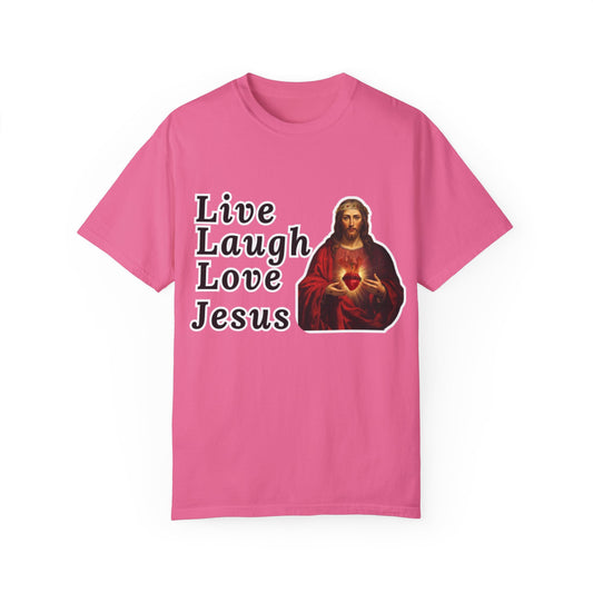 "Live Laugh Love" Jesus Unisex Garment-Dyed T-shirt - Jeremiah 29:11